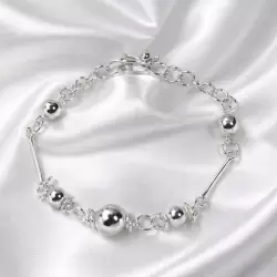 Pulsera de plata 950 con diseño elegante y contemporáneo, compuesta por delicados eslabones y esferas pulidas de distintos tamaños que aportan brillo y armonía. Su acabado brillante y cierre seguro la convierten en un accesorio sofisticado y versátil, ideal para lucir a diario o en ocasiones especiales.