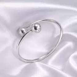 Pulsera rígida de plata 950 con diseño minimalista y moderno, destacada por sus dos esferas pulidas en los extremos que aportan equilibrio y sofisticación. Su acabado brillante y estilo atemporal la convierten en un accesorio elegante, ideal para complementar cualquier look con un toque sutil y refinado.